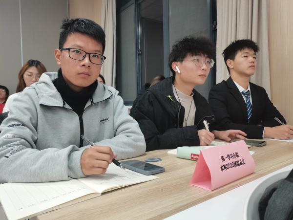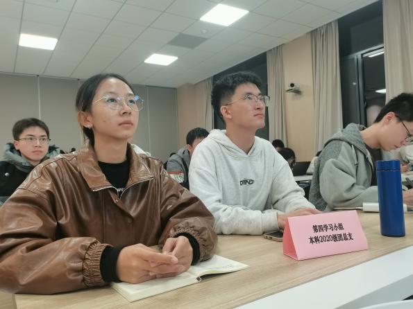 会前,以年级团总支为单位划分5个学习小组,依托校团委《12月基层团支部学习清单》,院团委选定学习篇目,各学习小组开展自学。会上,马克思主义学院研究生思政团成员孙彦博带领五个学习小组深入学习习近平总书记关于青年工作的重要思想,重点学习习近平总书记对青年一代的殷切希望和重要要求。现场学习小组围绕“有理想、敢担当、能吃苦、肯奋斗”四个关键词和“五个模范、五个带头”展开研讨,通过互问互答、心得分享巩固学习内容。