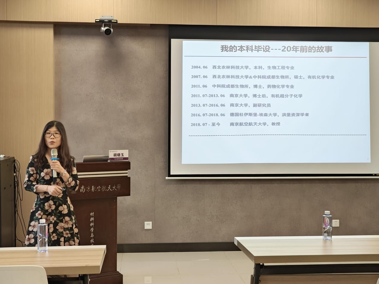 在研讨会上,胡晓玉从自身成长故事出发与各位教师分享了指导本科毕业设计中的一些经验思考。她指出,学生毕业设计中遇到的文献阅读、基础操作、理论方法、心理锻炼和论文撰写五个难关,其实是对应着知识储备、实验技能、数据分析、心理素质和写作技能五种能力的欠缺。她认为教师要重视毕业设计中与学生的沟通,深入了解学生的需求、注重对学生思想的疏导,培养学生的科学精神和创新精神,打通毕业教育最后一公里,要在南航“高质量成就每一位学生”的教育理念和人才培养模式下思考更加个性化的学科发展路径。