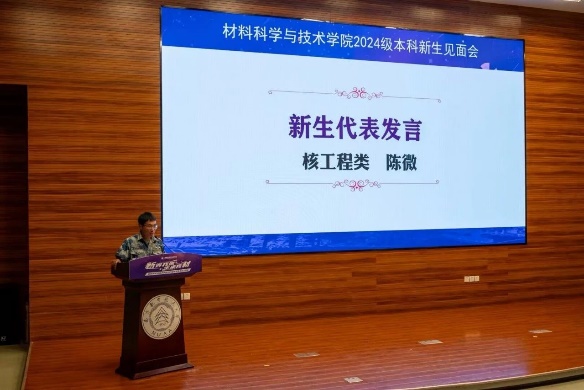 院党委书记石勇致欢迎辞,并寄语新生三点希望。一是要砥砺报国之志,成为可堪大任的三航之材;二是要修炼钻研态度,成为踏实肯干的栋梁之材;三是要涵育进取情怀,成为奋勇攀登的报国之材。他希望同学们探索科学,求微知著,成长为一名有"材"有"料"的材院人!
