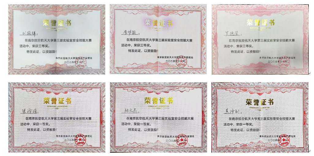 11月29日,南京航空航天大学第三届实验室安全技能大赛圆满落幕。在紧张而精彩的赛事中,材料学院参赛队伍表现出色。学生队伍梁泽瑶、张文杰、黄泽钊荣获学生组一等奖,教师队伍刘振辉、李梦颖、罗德荣荣获教师组三等奖。此次比赛的优异成绩,充分展现了材料学院师生出色的安全素养及优异的团队精神,也是学院长期以来重视实验室安全教育的成果。