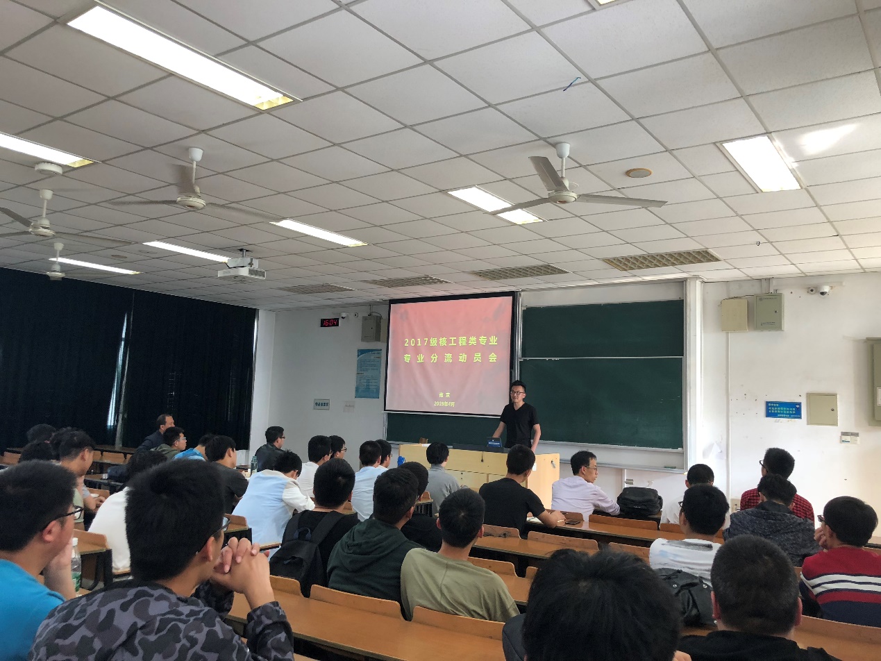 为加深学生对核工程专业的了解,做好专业分流的准备工作,2019年4月19日下午,电子游戏试玩 在6401教室举行2017级本科生核工程专业分流动员会。核工程专业老师、辅导员和2017级全体学生参加会议。
