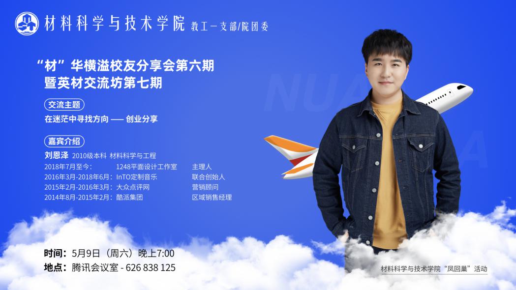 5月9日,电子游戏试玩 举办“材”华横溢校友分享会第六期暨英才交流坊第七期活动。本次分享会由教工一支部、院团委联合主办,邀请到创业成功的2010级本科生校友刘恩泽进行线上分享。学院教工一支部书记潘蕾主持了分享活动并代表学院聘请刘恩泽为校友导师。