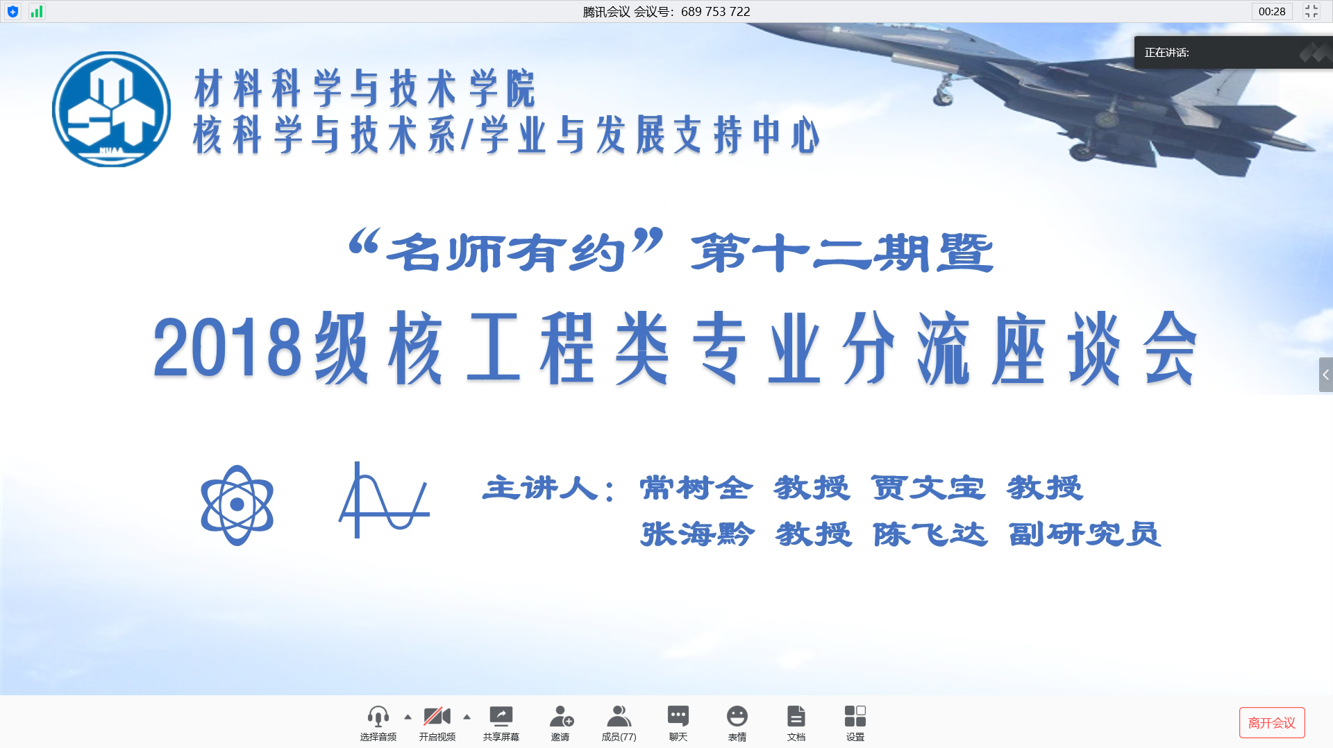 5月12日下午,电子游戏试玩 “名师有约”第十二期暨2018级核工程类专业方向座谈会通过腾讯会议平台顺利举办。会议由核科学与技术系主任常树全老师、核工程与核技术专业负责人贾文宝老师、辐射防护与核安全专业负责人张海黔老师、系教学副主任陈飞达老师主讲,2018级本科生辅导员蒋俊超及2018级核工程类专业全体本科生参与了本次座谈会。