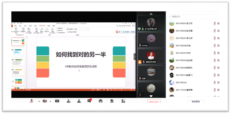 5月27日下午16点,一场线上“简历制作技巧培训”讲座拉开了训练营的序幕。本次讲座邀请到艾欧史密斯(中国)热水器有限公司校园招聘项目经理马倩倩作为主讲人,辅导员钟佳、邱禄芸老师与近三百名研究生及本科生参加。
