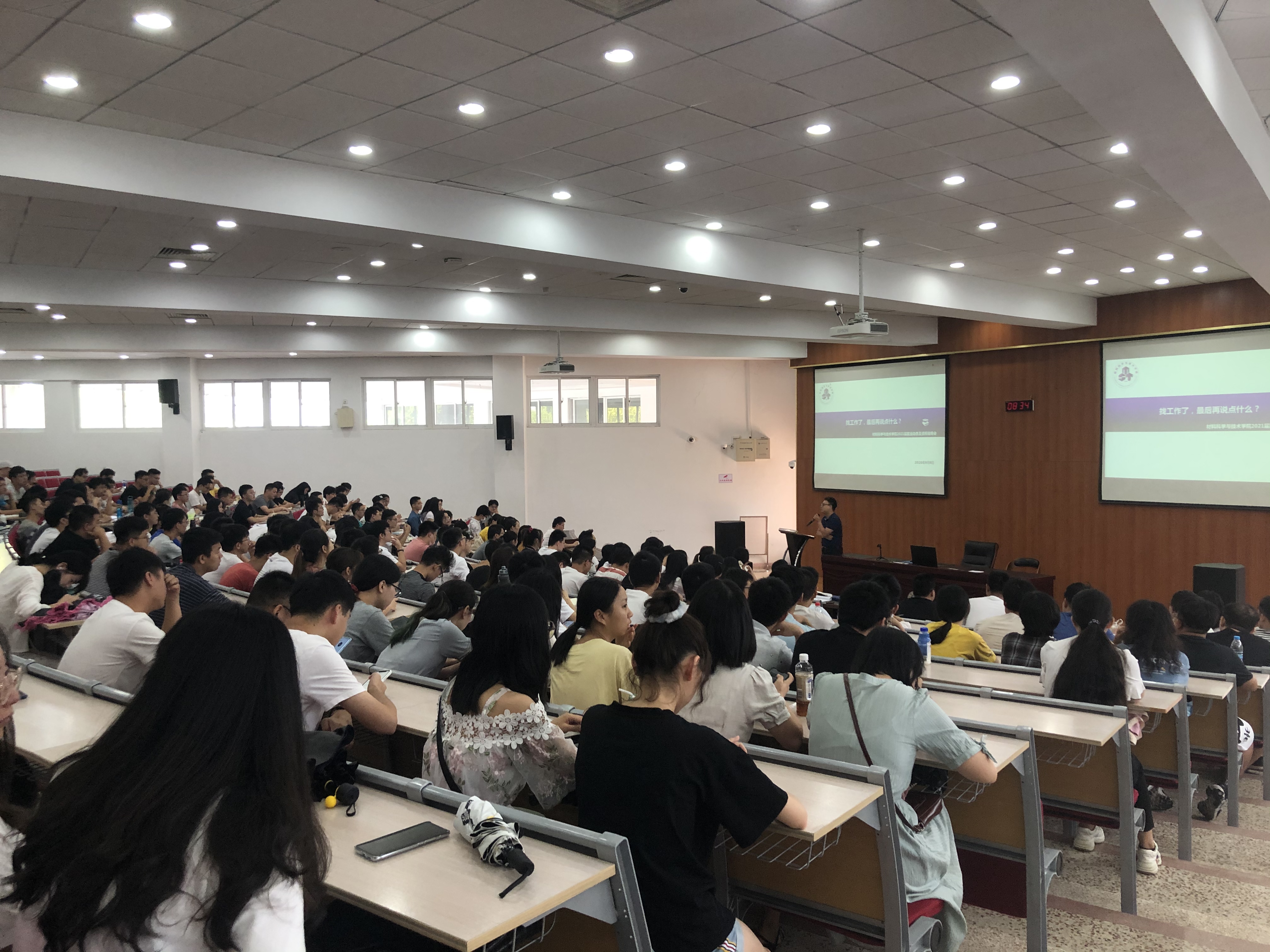 就业动员大会。大会由研究生辅导员钟佳和本科生辅导员邱禄芸主讲,全体2021届本硕毕业生参会。